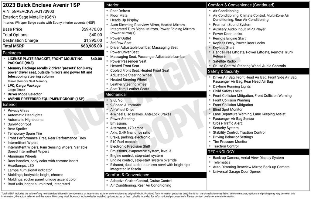 2023 Buick Enclave Avenir Sage Metallic AWD 3.6L V6 SIDI VVT 9-Speed Automatic
