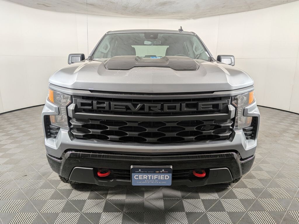 We look forward to serving you! Custom Convenience Package (Electric Rear-Window Defogger, EZ Lift Power Lock & Release Tailgate, LED Cargo Area Lighting, Remote Vehicle Starter System, and Theft Deterrent System (Unauthorized Entry)), Dark Essentials Package (LPO) (Black Name Plates (LPO)), Preferred Equipment Group 2CX (10-Way Power Driver Seat w/Lumbar, 120-Volt Bed Mounted Power Outlet, 120-Volt Interior Power Outlet, 3.5" Monochromatic Display Driver Info Center, Auto-Locking Rear Differential, Bluetooth® For Phone, Color-Keyed Carpeting Floor Covering, Deep-Tinted Glass, Dual Rear USB Ports (Charge Only), Electronic Cruise Control, Front Rubberized Vinyl Floor Mats, HD Rear Vision Camera, Manual Tilt Wheel Steering Column, OnStar Services Capable, Performance Red Recovery Hooks, Power Front Windows w/Driver Express Up/Down, Power Front Windows w/Passenger Express Down, Power Rear Windows w/Express Down, Rear 60/40 Folding Bench Seat (Folds Up), Rear Rubberized-Vinyl Floor Mats, Remote Keyless Entry, SiriusXM Trial Subscription, Standard Tailgate, Teen Driver, Tire Pressure Monitoring System, and Wi-Fi Hot Spot Capable), Suspension Package (Heavy-Duty Air Filter and Hill Descent Control), Trailering Package (Hitch Guidance), Chevrolet Certified Pre-Owned Certified, 10-Speed Automatic, 4WD, Black Cloth, 170 Amp Alternator, 220 Amp Alternator, 3.23 Rear Axle Ratio, 3.42 Rear Axle Ratio, 4-Wheel Disc Brakes, 40/20/40 Front Split-Bench Seat, 6 Speakers, 6-Speaker Audio System, ABS brakes, Air Conditioning, Alloy wheels, AM/FM radio: SiriusXM, Apple CarPlay/Android Auto, Auto High-beam Headlights, Automatic Emergency Braking, Auxiliary External Transmission Oil Cooler, Brake assist, Chevytec Spray-On Black Bedliner, Cloth Seat Trim, Compass, Delay-off headlights, Driver door bin, Driver vanity mirror, Dual Exhaust w/Polished Outlets, Dual front impact airbags, Dual front side impact airbags, Electronic Stability Control, Emergency communication system: OnStar, External Engine Oil Cooler, Following Distance Indicator, Forward Collision Alert, Front anti-roll bar, Front Center Armrest w/Storage, Front Pedestrian Braking, Front reading lights, Front wheel independent suspension, Fully automatic headlights, Heated door mirrors, Illuminated entry, Integrated Trailer Brake Controller, IntelliBeam Automatic High Beam On/Off, Lane Keep Assist w/Lane Departure Warning, Low tire pressure warning, Multi-Flex Tailgate, Occupant sensing airbag, Outside temperature display, Overhead airbag, Overhead console, Panic alarm, Passenger door bin, Passenger vanity mirror, Power door mirrors, Power driver seat, Power steering, Power windows, Premium audio system: Chevrolet Infotainment 3, Radio data system, Radio: Chevrolet Infotainment 3 System, Rear reading lights, Rear step bumper, Rear Wheelhouse Liners, Rear window defroster, Remote keyless entry, Security system, Single Outlet Exhaust, Speed control, Speed-sensing steering, Split