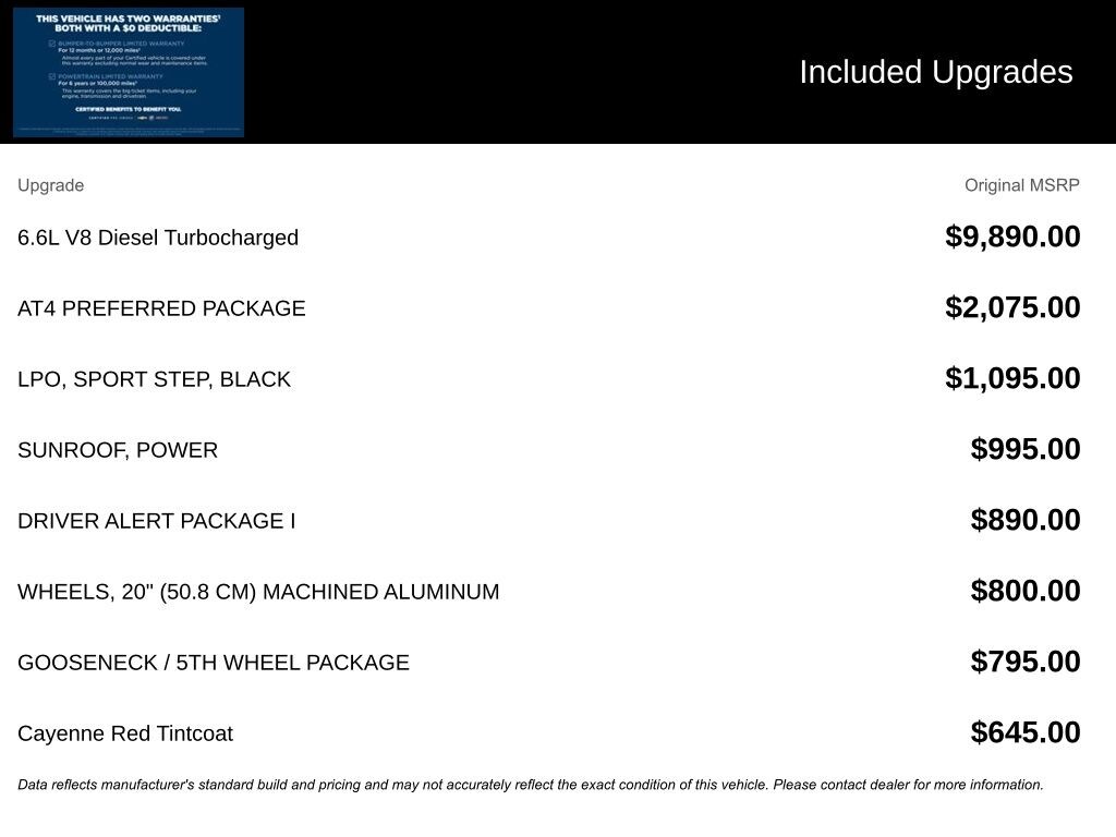 We look forward to serving you! AT4 Preferred Package (Bed View Camera w/2 Trailer Camera Provisions, Bose Premium 7 Speaker Sound System, HD Surround Vision w/2 Trailer View Camera Provisions, LED Smoked Amber Roof Marker Lamps, Power Sliding Rear Window w/Defogger, Radio: AM/FM w/Prem GMC Infotainment System & Navi, Universal Home Remote, and Wireless Charging), Driver Alert Package I (Lane Change Alert w/Side Blind Zone Alert, Rear Cross Traffic Alert, and Ultrasonic Front & Rear Park Assist), Gooseneck/5th Wheel Package, Gooseneck/5th Wheel Prep Package, Preferred Equipment Group 4SB (12-Volt Rear Auxiliary Power Outlet, 120-Volt Bed Mounted Power Outlet, 120-Volt Instrument Panel Power Outlet, 2 USB Ports, 2 USB Ports (1st Row), 2-Speed Active Transfer Case, 2nd Row Dual USB Charge-Only Ports, 4.2" Diagonal Color Display Driver Info Center, Compass Located In Instrument Cluster, Deep-Tinted Glass, Electric Rear-Window Defogger, Electrical Lock Control Steering Column, Floor-Mounted Center Console, Front Prem Floor Liners w/Removable Carpet Insert, GMC Connected Access Capable, HD Rear Vision Camera, Heated & Ventilated Front Bucket Seats, Heated 2nd Row Outboard Seats, Heated Driver & Front Outboard Passenger Seats, Integrated Trailer Brake Controller, Keyless Open & Start, LED Cargo Area Lighting, Manual Tilt-Wheel/Telescoping Steering Column, OnStar & GMC Connected Services Capable, Painted Black Surround Grille, Power Door Locks, Power Front Passenger Windows w/Express Up/Down, Power Rear Windows w/Express Down, Power Windows w/Driver Express Up/Down, Rear Prem Floor Liners w/Removable Carpet Insert, Rear Wheelhouse Liners, Red Recovery Hooks, Remote Vehicle Starter System, Spray-On Pickup Box Bed Liner w/AT4 Logo, Steering Wheel Audio Controls, Unauthorized Entry Theft-Deterrent System, Wi-Fi Hotspot Capable, and Wireless Phone Projection), Snow Plow Prep/Camper Package (220 Amps Alternator), X31 Off-Road Package (Hill Descent Control), GMC Certified Pre-Owned Certified, 10-Speed Automatic, 4WD, Jet Black With Kalahari Accents Leather, 10-Way Power Driver Seat Adjuster w/Lumbar, 10-Way Power Passenger Seat Adjuster w/Lumbar, 18" Machined Aluminum Wheels, 20" Machined Aluminum Wheels, 3.42 Axle Ratio, 3.73 Rear Axle Ratio, 4-Wheel Disc Brakes, 6 Speakers, 6-Speaker Audio System Feature, ABS brakes, Air Conditioning, Alloy wheels, AM/FM radio: SiriusXM with 360L, Apple CarPlay/Android Auto, Auto-dimming door mirrors, Auto-dimming Rear-View mirror, Automatic temperature control, Black Sport Step (LPO), Brake assist, Bumpers: body-color, Compass, Delay-off headlights, Driver door bin, Driver Memory, Driver vanity mirror, Dual front impact airbags, Dual front side impact airbags, Electronic Stability Control, Emergency communication system: OnStar and GMC connected services capable, Engine Block Heater, Exhaust Brake, Front anti-roll bar, Front Bucket Seats, Front Center Armrest, Front dual zone A/C, Front fog lights, Front License Plate Kit, Front