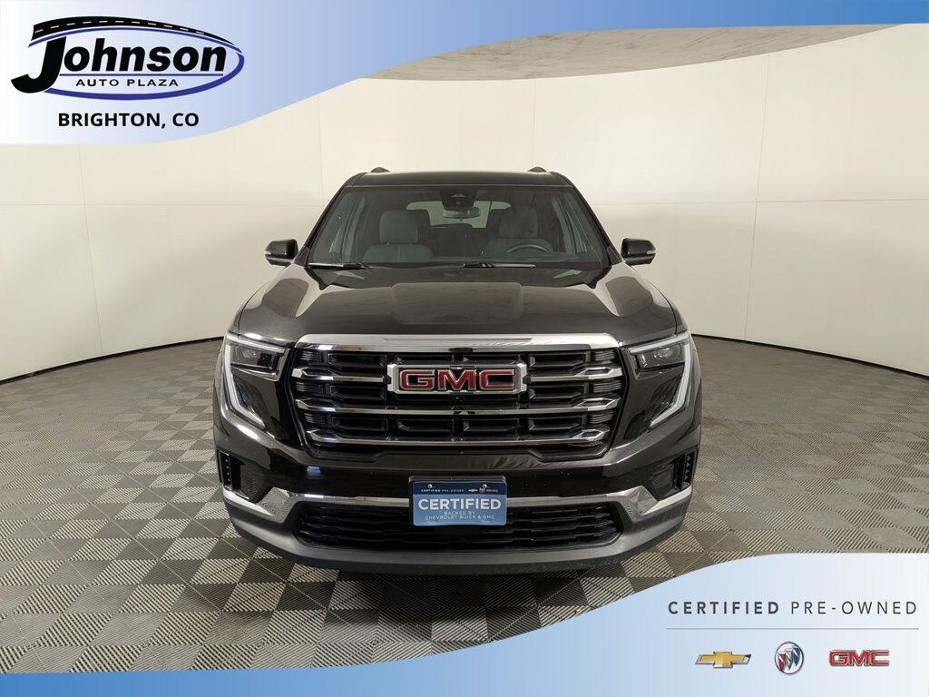 We look forward to serving you! Preferred Equipment Group 4SD, GMC Certified Pre-Owned Certified, AWD, After Dark Cloth, 12 Speakers, 18" x 7.5" Aluminum Wheels, 2-Way Driver Power Lumbar Seat Adjuster, 3.49 Final Drive Axle Ratio, 3rd row seats: split-bench, 4-Way Manual Front Passenger Seat Adjuster, 4-Wheel Disc Brakes, 8-Passenger Seating (2-3-3 Seating Configuration), 8-Way Power Driver Seat Adjuster, ABS brakes, Air Conditioning, Alloy wheels, AM/FM radio: SiriusXM with 360L, Apple CarPlay/Android Auto, Auto High-beam Headlights, Auto-dimming Rear-View mirror, Automatic temperature control, Bodyside moldings, Bose Premium 12-Speaker System w/Sub-Woofer, Brake assist, Bumpers: body-color, Cloth Seat Trim, Compass, Delay-off headlights, Driver door bin, Driver vanity mirror, Dual front impact airbags, Dual front side impact airbags, Electronic Stability Control, Emergency communication system: OnStar Services capable, Exterior Parking Camera Rear, Four wheel independent suspension, Front anti-roll bar, Front Bucket Seats, Front Center Armrest, Front dual zone A/C, Front fog lights, Front License Plate Bracket, Front reading lights, Fully automatic headlights, Heated door mirrors, Heated Driver & Front Passenger Seats, Heated front seats, Heated steering wheel, Illuminated entry, Leather steering wheel, Low tire pressure warning, Navigation System, Occupant sensing airbag, Outside temperature display, Overhead airbag, Overhead console, Panic alarm, Passenger door bin, Passenger vanity mirror, Power door mirrors, Power driver seat, Power Liftgate, Power steering, Power windows, Radio data system, Radio: 15" Premium GMC Infotainment System, Rear air conditioning, Rear anti-roll bar, Rear reading lights, Rear seat center armrest, Rear side impact airbag, Rear window defroster, Rear window wiper, Remote keyless entry, Security system, SiriusXM w/360L, Speed control, Speed-sensing steering, Split folding rear seat, Spoiler, Sport steering wheel, Steering wheel mounted audio controls, Tachometer, Telescoping steering wheel, Tilt steering wheel, Traction control, Trip computer, Turn signal indicator mirrors, Variably intermittent wipers, and VoltmeteR.