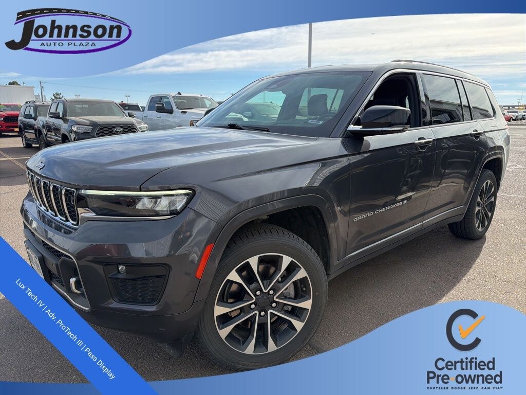 We look forward to serving you! Advanced Protech Group III (Active Driving Assist System, Heads-Up Display, Highway Assist System, Integrated Off-Road Camera, Interior Rear Facing Camera, Intersection Collision Assist System, Map-In-Cluster Display, Night Vision/Pedestrian-Animal Detection, Rear Back Up Camera Washer, and Surround View Camera System), Luxury Tech Group IV (2nd Row Manual Window Shades, ATC w/4 Zone Temp Control, Driver Power Seat Back Massage, Front Passenger Power Seat Back Massage, Nappa Leather Seats (TL), Passenger Seat Memory, Power Adjust 12-Way Driver Seat, Power Adjust 12-Way Front Passenger Seat, Rearview Autodim Digital Display Mirror, and Wireless Charging Pad), Quick Order Package 22N, FCA US LLC Certified Pre-Owned Certified, 10 Speakers, 10.1" Touchscreen Display, 19 Speakers High Performance Audio, 3.45 Rear Axle Ratio, 3rd row seats: split-bench, 4-Wheel Disc Brakes, 4G LTE Wi-Fi Hot Spot, 950 Watt Amplifier, ABS brakes, Active Noise Control System, Adaptive suspension, Air Conditioning, All Radio Equipped Vehicles, Alloy wheels, AM/FM radio: SiriusXM with 360L, Anti-whiplash front head restraints, Apple CarPlay, Audio memory, Auto High-beam Headlights, Auto-dimming door mirrors, Auto-dimming Rear-View mirror, Auto-leveling suspension, Automatic temperature control, Brake assist, Bumpers: body-color, Compass, Connected Travel & Traffic Services, Connectivity - US/Canada, Delay-off headlights, Disassociated Touchscreen Display, Driver door bin, Driver vanity mirror, Dual front impact airbags, Dual front side impact airbags, Electronic Stability Control, Emergency communication system, For Details, Visit DriveUconnect.com, For More Info, Call 800-643-2112, Four wheel independent suspension, Front anti-roll bar, Front Bucket Seats, Front Center Armrest w/Storage, Front dual zone A/C, Front fog lights, Front Passenger Interactive Display, Front reading lights, Fully automatic headlights, Garage door transmitter, Global Telematics Box Module (TBM), Google Android Auto, GPS Antenna Input, GPS Navigation, HD Radio, Heated door mirrors, Heated front seats, Heated rear seats, Heated steering wheel, Illuminated entry, Integrated Center Stack Radio, Integrated Voice Command w/Bluetooth, Knee airbag, Leather steering wheel, Low tire pressure warning, Memory seat, Nappa Leather Seats, Navigation System, Normal Duty Suspension, Occupant sensing airbag, Outside temperature display, Overhead airbag, Overhead console, Panic alarm, Passenger door bin, Passenger vanity mirror, Power door mirrors, Power driver seat, Power Fold Seatbacks, Power Liftgate, Power moonroof, Power passenger seat, Power steering, Power windows, Radio data system, Radio: Uconnect 5 Nav w/10.1" Display, Radio: Uconnect 5 Nav w/8.4" Display, Rain sensing wipers, Rear air conditioning, Rear anti-roll bar, Rear reading lights, Rear window defroster, Rear window wiper, Reclining 3rd row seat, Remote keyless entry, Security system, SiriusXM Radio Service,