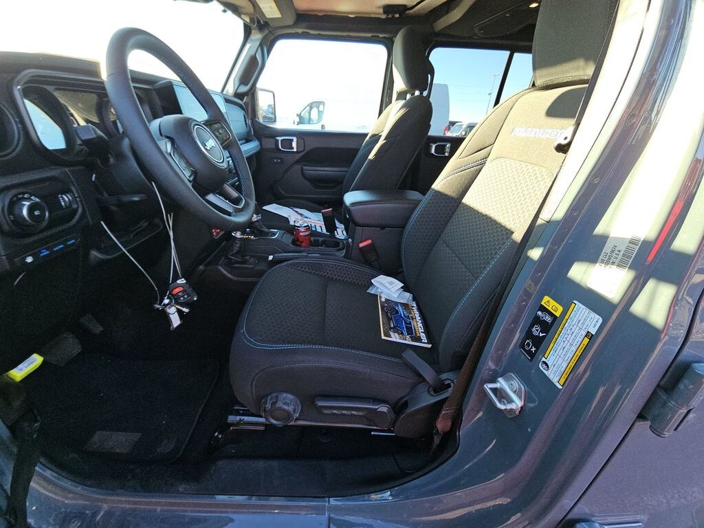 We look forward to serving you! Convenience Group (Heated Front Seats, Heated Steering Wheel, Remote Start System, and Universal Garage Door Opener), Quick Order Package 29V Rubicon 4xe, Safety Group (Auto High Beam Headlamp Control, Blind Spot & Cross Path Detection, and ParkSense Rear Park Assist System), FCA US LLC Certified Pre-Owned Certified, 2.0L I4 DOHC, 4-Wheel Disc Brakes, 4.10 Rear Axle Ratio, 4G LTE Wi-Fi Hot Spot, 7 & 4 Pin Wiring Harness, 8 Speakers, ABS brakes, Air Conditioning, Alloy wheels, AM/FM radio: SiriusXM, Apple CarPlay, Apple CarPlay/Android Auto, Automatic temperature control, Black 3-Piece Hard Top, Brake assist, Compass, Connectivity - US/Canada, Delay-off headlights, Driver door bin, Driver vanity mirror, Dual front impact airbags, Dual front side impact airbags, Electronic Stability Control, Emergency communication system: Jeep Connect, Freedom Panel Storage Bag, Front anti-roll bar, Front Bucket Seats, Front Center Armrest w/Storage, Front dual zone A/C, Front fog lights, Front License Plate Bracket (DISC), Front reading lights, Fully automatic headlights, Google Android Auto, Heated door mirrors, Illuminated entry, Integrated roll-over protection, Integrated Voice Command w/Bluetooth, Low tire pressure warning, Occupant sensing airbag, Outside temperature display, Overhead airbag, Panic alarm, ParkView Rear Back-Up Camera, Passenger door bin, Passenger vanity mirror, Performance Suspension, Power door mirrors, Power steering, Power windows, Radio data system, Radio: Uconnect 5 w/12.3" Display, Rear anti-roll bar, Rear reading lights, Rear Window Defroster, Rear Window Wiper/Washer, Remote keyless entry, Security system, Speed control, Split folding rear seat, Steering wheel mounted audio controls, Sustainable Premium Cloth Seats, Tachometer, Telescoping steering wheel, Tilt steering wheel, Traction control, Trip computer, Variably intermittent wipers, Voltmeter, and Wheels: 17" x 7.5" Machined w/Black PocketS.