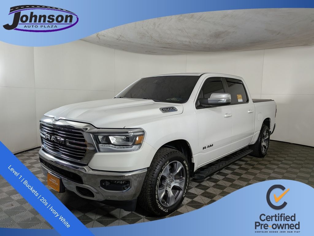 We look forward to serving you! Laramie Level 1 Equipment Group (12" Touchscreen Display, 2nd Row In Floor Storage Bins, 4G LTE Wi-Fi Hot Spot, Apple CarPlay, Auto High Beam Headlamp Control, Blind Spot & Cross Path Detection, Connected Travel & Traffic Services, Connectivity - US/Canada, Disassociated Touchscreen Display, Electric Shift-On-Demand Transfer Case, Foam Bottle Insert (Door Trim Panel), For Details, Visit DriveUconnect.com, For More Info, Call 800-643-2112, Front Door Accent Lighting, Front LED Fog Lamps, Global Telematics Box Module (TBM), Google Android Auto, GPS Antenna Input, GPS Navigation, HD Radio, Integrated Center Stack Radio, Integrated Voice Command w/Bluetooth, LED Reflector Headlamps, Radio: Uconnect 5 Nav w/12.0" Display, Rain Sensitive Windshield Wipers, Rear Door Accent Lighting, Rear Power Sliding Window, Rear Window Defroster, Remote Tailgate Release, SiriusXM Radio Service, SiriusXM w/360L, and USB Host Flip), Quick Order Package 27H Laramie, FCA US LLC Certified Pre-Owned Certified, #1 Seat Foam Cushion, 10 Speakers, 3 Rear Seat Head Restraints, 3.21 Rear Axle Ratio, 4 Way Front Headrests, 4-Wheel Disc Brakes, 48V Belt Starter Generator, ABS brakes, Adjustable pedals, Air Conditioning, Alloy wheels, AM/FM radio: SiriusXM with 360L, Anti-Spin Differential Rear Axle, Apple CarPlay/Android Auto, Audio memory, Auto-dimming door mirrors, Auto-Dimming Exterior Driver Mirror, Auto-dimming Rear-View mirror, Automatic temperature control, Brake assist, Bumpers: chrome, Chrome Exterior Mirrors, Class IV Receiver Hitch, Compass, Convex Wide-Angle Exterior Mirror Insert, Delay-off headlights, Driver door bin, Driver Seat Memory, Driver vanity mirror, Dual front impact airbags, Dual front side impact airbags, Electronic Stability Control, Exterior Mirrors Courtesy Lamps, Exterior Mirrors w/Heating Element, Exterior Mirrors w/Memory, Exterior Mirrors w/Supplemental Signals, Front anti-roll bar, Front Center Armrest w/Storage, Front dual zone A/C, Front fog lights, Front License Plate Bracket, Front reading lights, Front Seat Back Map Pockets, Front wheel independent suspension, Fully automatic headlights, Garage door transmitter, Heated door mirrors, Heated Front Seats, Heated front seats, Heated Steering Wheel, Heated steering wheel, Illuminated entry, Leather steering wheel, Leather Trim 40/20/40 Bench Seat, Low tire pressure warning, Memory seat, MOPAR Front & Rear Rubber Floor Mats, Navigation System, Occupant sensing airbag, Outside temperature display, Overhead airbag, Overhead console, Panic alarm, ParkSense Front/Rear Park Assist w/Stop (DISC), ParkView Rear Back-Up Camera, Passenger door bin, Passenger vanity mirror, Pedal memory, Power 2-Way Driver Lumbar Adjust, Power 2-Way Passenger Lumbar Adjust, Power 8-Way Driver & Passenger Seats, Power door mirrors, Power driver seat, Power passenger seat, Power steering, Power windows, Power-Folding Mirr