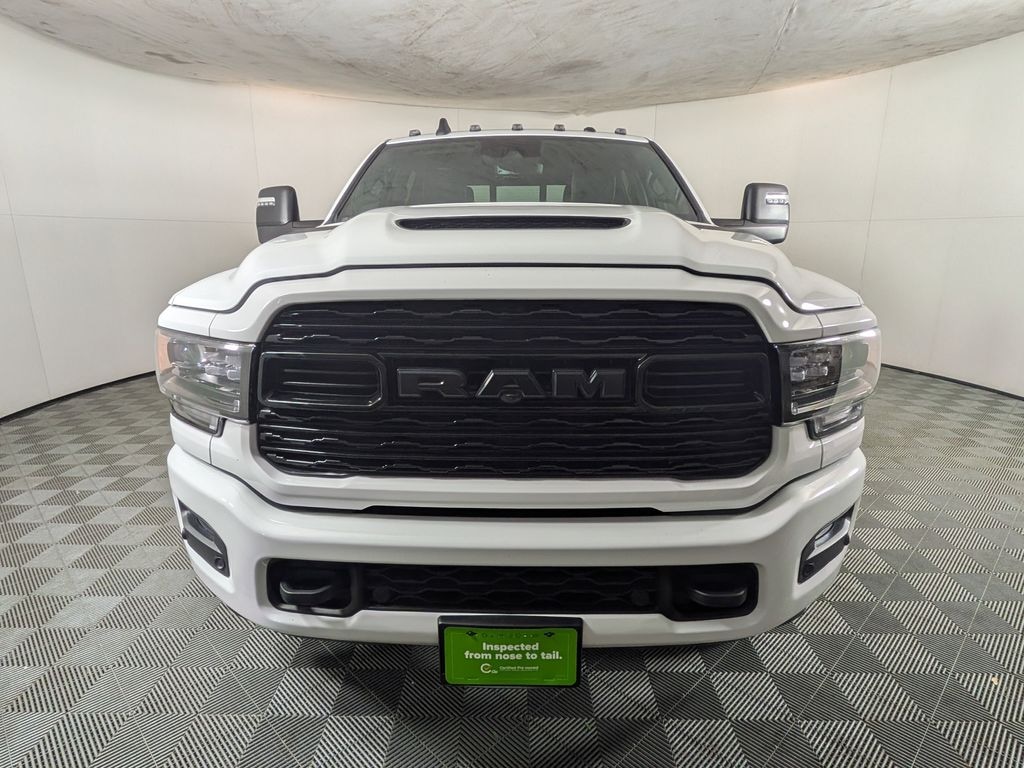 We look forward to serving you! Cold Weather Group (Engine Block Heater and MOPAR Winter Front Grille Cover), Limited Level 1 Equipment Group (12" Touchscreen Display, 4G LTE Wi-Fi Hot Spot, Adaptive Steering System, Alexa Built-In, Apple CarPlay, Connected Travel & Traffic Services, Connectivity - US/Canada, CTR Stop Lamp w/Cargo View Camera, Disassociated Touchscreen Display, For Details Visit DriveUconnect.com, For More Info, Call 800-643-2112, Full Speed Forward Collision Warning Plus, Global Telematics Box Module (TBM), Google Android Auto, GPS Antenna Input, GPS Navigation, HD Radio, Integrated Voice Command w/Bluetooth, LED Bed Lighting, MOPAR Spray In Bedliner, Off-Road Information Pages, Power Deployable Running Boards, Radio: Uconnect 5 Nav w/12.0" Display, SiriusXM Radio Service, SiriusXM w/360L, and Trailer Tow Pages), Night Edition (Black Exterior Truck Badging, Body Color Grille Surround, and Sport Performance Hood), Protection Group, Quick Order Package 21M Limited, FCA US LLC Certified Pre-Owned Certified, 10 Speakers, 220 Amp Alternator, 3.73 Axle Ratio, 4-Wheel Disc Brakes, 4.10 Axle Ratio (DISC), 50 Gallon Fuel Tank, 5th Wheel/Gooseneck Towing Prep Group, ABS brakes, Active Noise Control System, Adjustable pedals, Air Conditioning, Alloy wheels, AM/FM radio: SiriusXM with 360L, Apple CarPlay/Android Auto, Audio memory, Auto High-beam Headlights, Auto Level Rear Air Suspension, Auto-dimming door mirrors, Auto-dimming Rear-View mirror, Automatic temperature control, Bodyside moldings, Brake assist, Bumpers: body-color, Center Hub, Clearance Lamps, Compass, Delay-off headlights, Driver door bin, Driver vanity mirror, Dual Alternators Rated At 440 Amps, Dual front impact airbags, Dual front side impact airbags, Dual Rear Wheels, Electronic Stability Control, Electronically Controlled Throttle, Front anti-roll bar, Front Bucket Seats, Front Center Armrest w/Storage, Front dual zone A/C, Front fog lights, Front License Plate Bracket, Front reading lights, Fully automatic headlights, Garage door transmitter, Genuine wood console insert, Genuine wood dashboard insert, Genuine wood door panel insert, Heated door mirrors, Heated front seats, Heated rear seats, Heated steering wheel, I/P Mounted Auxiliary Switches, Illuminated entry, Instrument Cluster Theme 8, Leather steering wheel, Limited Leather Bucket Seats, Low tire pressure warning, Luxury Door Trim Panel (CTH), Manufacturer's Statement of Origin, Memory seat, MOPAR Front & Rear Rubber Floor Mats, Navigation System, Occupant sensing airbag, Outside temperature display, Overhead airbag, Overhead console, Panic alarm, ParkView Rear Back-Up Camera, Passenger door bin, Passenger vanity mirror, Pedal memory, Power door mirrors, Power driver seat, Power passenger seat, Power steering, Power Sunroof, Power windows, Radio data system, Radio: Uconnect 5 Nav w/8.4" Display, Rain sensing wipers, Rear reading lights, Rear seat center armrest, Rear step bumper, Rear window defroster, Remote keyless entry, Security system, Speed control, Split folding rear seat, Steering wheel mounted audio controls, Tachometer, Tilt steering wheel, Tip Start, Tow-Mode Camera (Wired), Traction control, Trailer Tire Pressure Monitoring System, Tri-Fold Tonneau Cover, Trip computer, Turn signal indicator mirrors, Variably intermittent wipers, Ventilated front seats, Voltmeter, Wheels: 17" x 6.0" Black Machined Aluminum, Wheels: 17" x 6.0" Polished Aluminum, and Wheels: 20" x 8.0" Diamond Cut Face AluminuM.