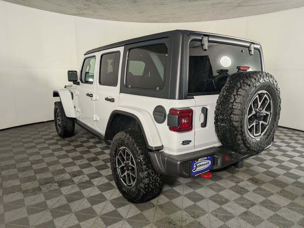We look forward to serving you! Convenience Group (Heated Front Seats, Heated Steering Wheel, and Universal Garage Door Opener), Quick Order Package 22R Rubicon, 4-Wheel Disc Brakes, 4.10 Rear Axle Ratio, 4G LTE Wi-Fi Hot Spot, 8 Speakers, 97 MPH Vehicle Max Speed Calibration, ABS brakes, Air Conditioning, Alloy wheels, AM/FM radio: SiriusXM, Apple CarPlay, Apple CarPlay/Android Auto, Automatic temperature control, Aux Battery, Auxiliary Switches, Black 3-Piece Hard Top, Body Color Rubicon Highline Flare, Brake assist, Class II Receiver Hitch, Cloth Low-Back Bucket Seats, Compass, Connectivity - US/Canada, Delay-off headlights, Driver door bin, Driver vanity mirror, Dual front impact airbags, Dual front side impact airbags, Electronic Stability Control, Emergency communication system: Jeep Connect, Freedom Panel Storage Bag, Front anti-roll bar, Front Bucket Seats, Front Center Armrest w/Storage, Front dual zone A/C, Front fog lights, Front License Plate Bracket (DISC), Front reading lights, Fully automatic headlights, Google Android Auto, Heated door mirrors, Illuminated entry, Integrated roll-over protection, Jeep Trail Rated Kit, Low tire pressure warning, MOPAR All-Weather Floor Mats, Non-Lock Fuel Cap w/o Discriminator, Occupant sensing airbag, Outside temperature display, Overhead airbag, Panic alarm, ParkView Rear Back-Up Camera, Passenger door bin, Passenger vanity mirror, Performance Suspension, Power door mirrors, Power steering, Power windows, Radio data system, Radio: Uconnect 5 w/12.3" Display, Rear anti-roll bar, Rear reading lights, Rear Window Defroster, Rear Window Wiper/Washer, Remote keyless entry, Security system, Speed control, Split folding rear seat, Steering wheel mounted audio controls, Stop-Start Dual Battery System, Tachometer, Telescoping steering wheel, Tilt steering wheel, Traction control, Trip computer, Variably intermittent wipers, Voltmeter, and Wheels: 17" x 7.5" Machined/Painted BlacK. All customers may not qualify for all rebates. Price includes: $2000 - 2025 National Overaged Select Inventory Bonus Cash. Exp. 11/03/2025 $2500 - 2025 National Retail Bonus Cash . Exp. 11/03/2025