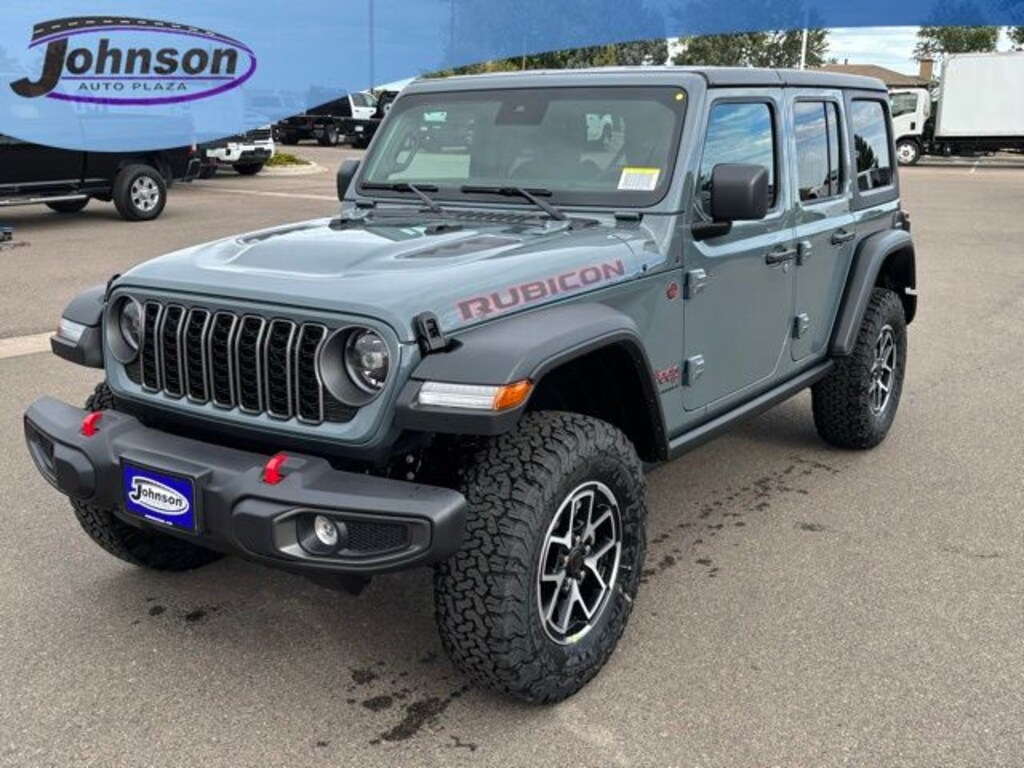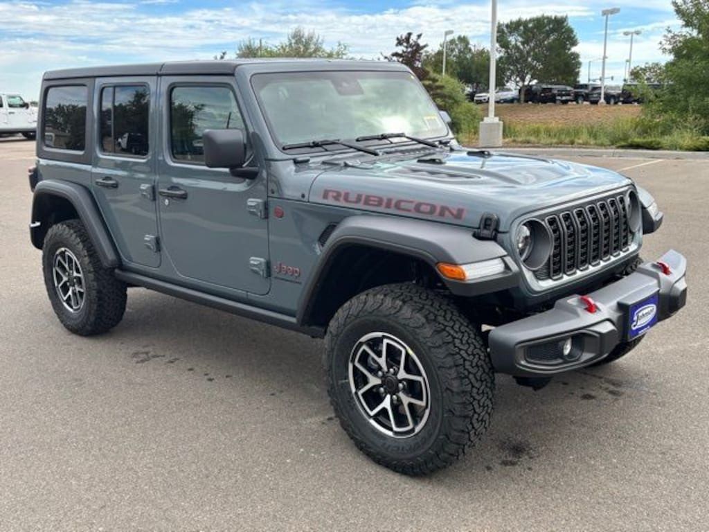 We look forward to serving you! Convenience Group (Heated Front Seats, Heated Steering Wheel, and Universal Garage Door Opener), Quick Order Package 24R Rubicon, 4-Wheel Disc Brakes, 4.10 Rear Axle Ratio, 4G LTE Wi-Fi Hot Spot, 8 Speakers, 97 MPH Vehicle Max Speed Calibration, ABS brakes, Air Conditioning, Alloy wheels, AM/FM radio: SiriusXM, Apple CarPlay, Apple CarPlay/Android Auto, Automatic temperature control, Aux Battery, Auxiliary Switches, Black 3-Piece Hard Top, Brake assist, Class II Receiver Hitch, Cloth Low-Back Bucket Seats, Compass, Connectivity - US/Canada, Delay-off headlights, Driver door bin, Driver vanity mirror, Dual front impact airbags, Dual front side impact airbags, Electronic Stability Control, Emergency communication system: Jeep Connect, Freedom Panel Storage Bag, Front anti-roll bar, Front Bucket Seats, Front Center Armrest w/Storage, Front dual zone A/C, Front fog lights, Front License Plate Bracket (DISC), Front reading lights, Fully automatic headlights, Google Android Auto, Heated door mirrors, Illuminated entry, Integrated roll-over protection, Low tire pressure warning, MOPAR All-Weather Floor Mats, Non-Lock Fuel Cap w/o Discriminator, Occupant sensing airbag, Outside temperature display, Overhead airbag, Panic alarm, ParkView Rear Back-Up Camera, Passenger door bin, Passenger vanity mirror, Performance Suspension, Power door mirrors, Power steering, Power windows, Radio data system, Radio: Uconnect 5 w/12.3" Display, Rear anti-roll bar, Rear reading lights, Rear Window Defroster, Rear Window Wiper/Washer, Remote keyless entry, Security system, Speed control, Split folding rear seat, Steering wheel mounted audio controls, Stop-Start Dual Battery System, Tachometer, Telescoping steering wheel, Tilt steering wheel, Traction control, Trip computer, Variably intermittent wipers, Voltmeter, and Wheels: 17" x 7.5" Machined/Painted BlacK.
