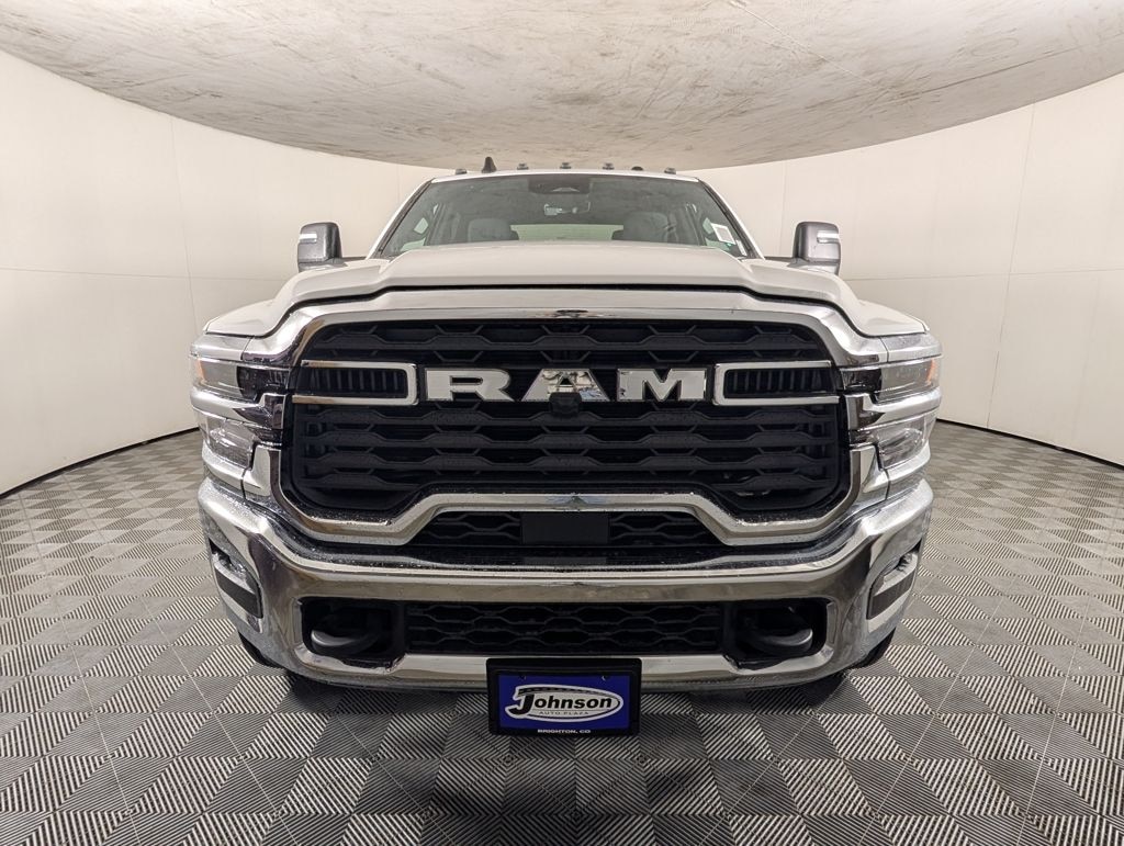 We look forward to serving you! Chrome Appearance Group (19.5" x 6.0" Steel Wheels, Bright Front Bumper, Center Hub, Chrome Grille Surround, and Matte Black Mesh w/Chrome Grille), Cold Weather Group (Engine Block Heater and MOPAR Winter Front Grille Cover), Heavy Duty Snow Plow Prep Group (Upgraded Rear HD Stabilizer Bar), Quick Order Package 25A Tradesman, Tradesman Level 1 Equipment Group (Black Exterior Mirrors, Black Power Heated Fold Telescope Mirrors, Exterior Mirrors Courtesy Lamps, Exterior Mirrors w/Heating Element, Exterior Mirrors w/Supplemental Signals, Manual Folding Exterior Mirrors, Manual Telescoping Mirrors, Mirror Running Lights, Power Adjust Mirrors, Power-Adjustable Convex Aux Mirrors, Rear Window Defroster, Trailer Brake Control, and Trailer Light Check), 4-Wheel Disc Brakes, 4.44 Axle Ratio, 40/20/40 Split Bench Seat, 4G LTE Wi-Fi Hot Spot, 6 Speakers, ABS brakes, Air Conditioning, AM/FM radio: SiriusXM, Apple CarPlay, Apple CarPlay/Android Auto, Compass, Connectivity - US/Canada, Delay-off headlights, Driver door bin, Dual front impact airbags, Dual rear wheels, Electronic Stability Control, Emergency communication system: RAM Connect, For Details, Visit DriveUconnect.com, Front anti-roll bar, Front Armrest w/Cupholders, Front Center Armrest w/Storage, Front fog lights, Front License Plate Bracket, Front reading lights, Fully automatic headlights, Global Telematics Box Module (TBM), Google Android Auto, GPS Antenna Input, Heavy Duty Front Suspension Group, Integrated Voice Command w/Bluetooth, Manual Adjust 4-Way Driver Seat, Manual Adjust 4-Way Front Passenger Seat, Manual DPF Regeneration, Manufacturer's Statement of Origin, Occupant sensing airbag, Outside temperature display, Overhead console, Panic alarm, ParkView Rear Back-Up Camera, Passenger door bin, Passenger vanity mirror, Power steering, Power Take-Off Right/Left, Power windows, Radio data system, Radio: Uconnect 5 w/8.4" Display, Rear anti-roll bar, Rear Folding Seat, Rear reading lights, Remote keyless entry, Remote USB Port - Charge Only, Speed control, Tachometer, Temperature & Compass Gauge, Tilt steering wheel, Traction control, Variably intermittent wipers, Voltmeter, and Wheels: 19.5" x 6.0" Black Painted SteeL.