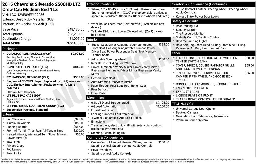 2015 Chevrolet Silverado 2500HD LTZ Deep Ruby Metallic 4WD Duramax 6.6L V8 Turbodiesel Allison 1000 6-Speed Automatic