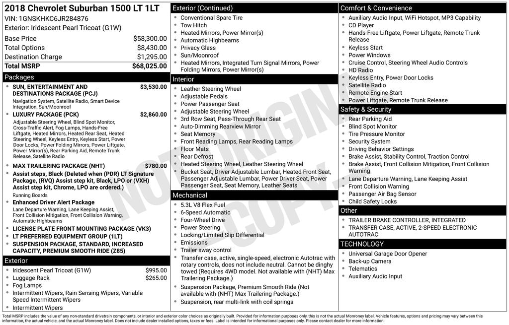 2018 Chevrolet Suburban LT Iridescent Pearl Tricoat 4WD EcoTec3 5.3L V8 6-Speed Automatic Electronic with Overdrive
