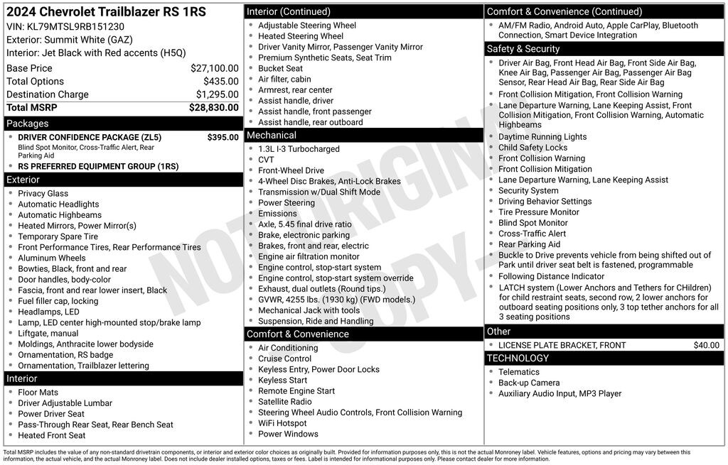 2024 Chevrolet TrailBlazer RS Summit White FWD 1.3L Ecotec Turbo DOHC SIDI w/VVT CVT