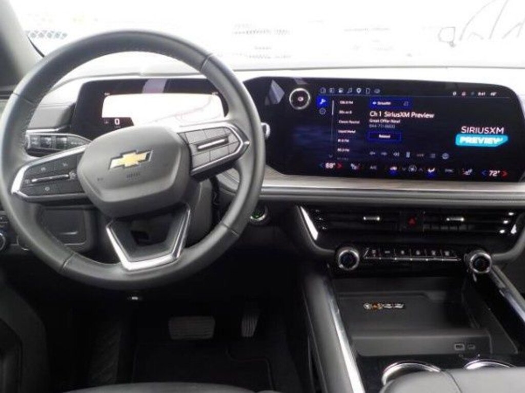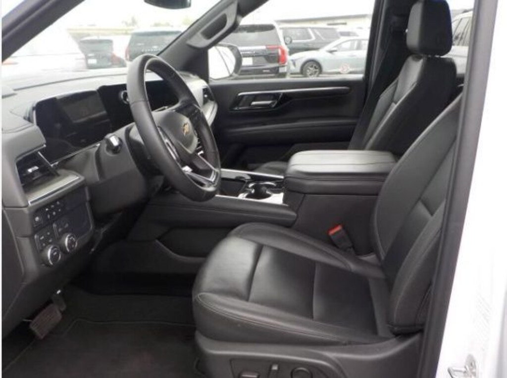 We look forward to serving you! License Plate Front Mounting Package, Preferred Equipment Group 1LT (1st and 2nd Row Color-Keyed Carpeted Floor Mats, 3-Spoke Wrapped Steering Wheel, 3rd Row Manual 60/40 Split-Folding Bench Seats, Color-Keyed Carpeting Floor Covering, Floor Console with Storage Area, Front Bucket Seats, Front Pedestrian and Bicyclist Braking, Frontal Driver and Outboard Passenger Airbags, Memory Settings For Driver, Rear Power Liftgate, Remote Start, SiriusXM with 360L Trial Subscription, USB Ports, and Wireless Phone Charging), 4WD, Black Leather, 2-Way Power Driver Lumbar Seat Adjuster, 2-Way Power Front Passenger Lumbar Seat Adjuster, 3.23 Rear Axle Ratio, 3rd row seats: split-bench, 4-Wheel Disc Brakes, 6 Speakers, 6-Speaker Audio System Feature, 8-Way Power Driver Seat Adjuster, 8-Way Power Front Passenger Seat Adjuster, ABS brakes, Air Conditioning, Alloy wheels, AM/FM radio: SiriusXM with 360L, Apple CarPlay/Android Auto, Auto High-beam Headlights, Automatic temperature control, Brake assist, Bumpers: body-color, Compass, Delay-off headlights, Driver door bin, Driver vanity mirror, Dual front impact airbags, Dual front side impact airbags, Electronic Stability Control, Emergency communication system: OnStar and Chevrolet connected services capable, Exterior Parking Camera Rear, Four wheel independent suspension, Front anti-roll bar, Front Center Armrest, Front dual zone A/C, Front reading lights, Fully automatic headlights, Heated door mirrors, Heated Driver and Front Passenger Seats, Heated front seats, Illuminated entry, Leather-Appointed Seat Trim, Low tire pressure warning, Memory seat, Navigation system: Google built-in compatibility (select service plan required, terms and limitations apply), Occupant sensing airbag, Outside temperature display, Overhead airbag, Overhead console, Panic alarm, Passenger door bin, Passenger vanity mirror, Power door mirrors, Power driver seat, Power Liftgate, Power passenger seat, Power steering, Power windows, Premium audio system: Chevrolet Infotainment 3 Premium, Premium Smooth Ride Suspension, Radio data system, Radio: 17.7" Diagonal Advanced Color LCD Display, Rain sensing wipers, Rear air conditioning, Rear anti-roll bar, Rear reading lights, Rear seat center armrest, Rear window defroster, Rear window wiper, Remote keyless entry, Security system, Speed control, Speed-sensing steering, Split folding rear seat, Spoiler, Steering wheel mounted audio controls, Tachometer, Telescoping steering wheel, Tilt steering wheel, Traction control, Trip computer, Variably intermittent wipers, Voltmeter, and Wheels: 18" x 8.5" Bright Silver Painted AluminuM.