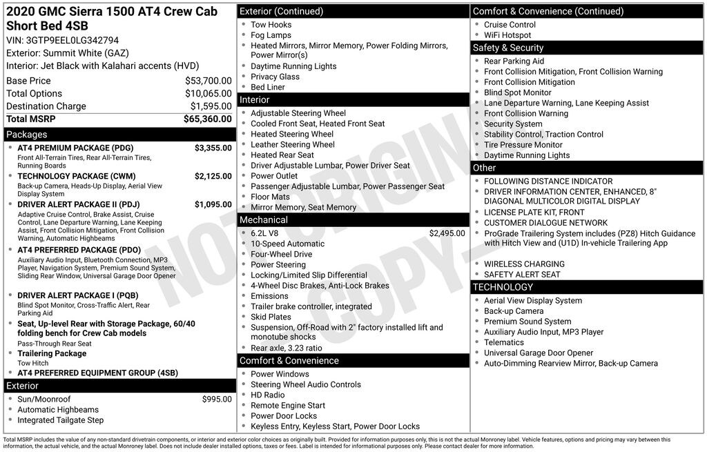2020 GMC Sierra 1500 AT4 Summit White 4WD EcoTec3 6.2L V8 10-Speed Automatic