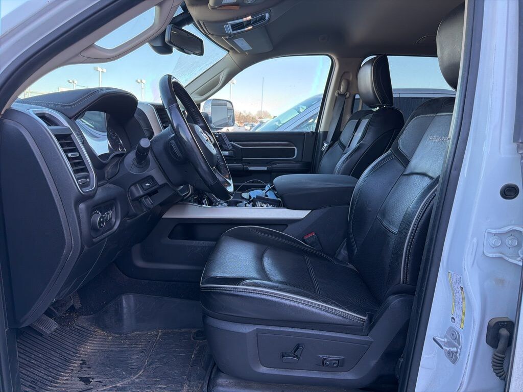 We look forward to serving you! Cold Weather Group (Engine Block Heater and Winter Front Grille Cover), Heavy Duty Snow Plow Prep Group, Laramie Level 1 Equipment Group (Auto High Beam Headlamp Control, Blind Spot & Cross Path Detection, Exterior Mirrors w/Memory, Foam Bottle Insert (Door Trim Panel), Mirror-Mounted Aux Reverse Lamps, Power Adjustable Convex Aux Mirrors, Power Adjustable Pedals w/Memory, Pwr Convenience Chrome Tow Mirrors w/Spotter & Memory, Radio/Driver Seat/Mirrors/Pedals Memory, Rain Sensitive Windshield Wipers, Remote Tailgate Release, Single Disc Remote CD Player, and Ventilated Front Seats), Off Road Package (Front Performance Tuned Shock Absorbers, Hill Descent Control, Off Road Decal, and Rear Performance Tuned Shock Absorbers), Quick Order Package 2HH Laramie, Towing Technology Group (Center Stop Lamp w/Cargo View Camera, Surround View Camera System, and Trailer Reverse Guidance), #1 Seat Foam Cushion, 10 Speakers, 115V Auxiliary Rear Power Outlet, 2 Way Rear Headrest Seat, 220 Amp Alternator, 3.73 Axle Ratio, 4 Way Front Headrests, 4-Wheel Disc Brakes, ABS brakes, Active Noise Control System, Adjustable pedals, Air Conditioning, Alloy wheels, AM/FM radio: SiriusXM, Anti-Spin Differential Rear Axle, Apple CarPlay, Apple CarPlay/Android Auto, Auto-dimming Rear-View mirror, Automatic temperature control, Brake assist, Bumpers: chrome, Center Hub, Compass, Delay-off headlights, Driver door bin, Driver vanity mirror, Dual front impact airbags, Dual front side impact airbags, Electronic Stability Control, Electronically Controlled Throttle, Front anti-roll bar, Front Center Armrest w/Storage, Front dual zone A/C, Front fog lights, Front reading lights, Front Seat Back Map Pockets, Fully automatic headlights, Garage door transmitter, Google Android Auto, GPS Antenna Input, Heated door mirrors, Heated Front Seats, Heated front seats, Heated Steering Wheel, Heated steering wheel, High Back Seats, Illuminated entry, Integrated Voice Command w/Bluetooth, Leather steering wheel, Leather Trim 40/20/40 Bench Seat, Low tire pressure warning, Manufacturer's Statement of Origin, Occupant sensing airbag, Outside temperature display, Overhead airbag, Overhead console, Panic alarm, ParkSense Front/Rear Park Assist System, ParkView Rear Back-Up Camera, Passenger door bin, Passenger vanity mirror, Power 2-Way Driver Lumbar Adjust, Power 2-Way Passenger Lumbar Adjust, Power Adjust 8-Way Driver Seat, Power Adjust 8-Way Front Passenger Seat, Power door mirrors, Power driver seat, Power passenger seat, Power steering, Power windows, Radio data system, Radio: Uconnect 4 w/8.4" Display, Rear 60/40 Folding Seat, Rear anti-roll bar, Rear reading lights, Rear seat center armrest, Rear step bumper, Rear window defroster, Remote keyless entry, Security system, Selectable Tire Fill Alert (DISC), SiriusXM Satellite Radio, Speed control, Split folding rear seat, Steering wheel mounted audio controls, Tachometer, Tilt steering wheel, Tip Start, Tire Fill Alert (DISC), Traction control, Trip computer, Turn signal indicator mirrors, USB Host Flip, Variably intermittent wipers, Vendor Painted Cargo Box Tracking, Voltmeter, Wheels: 18" x 8.0" Polished Aluminum, and Wheels: 20" x 8.0" Painted Aluminum w/Chrome InsertS.