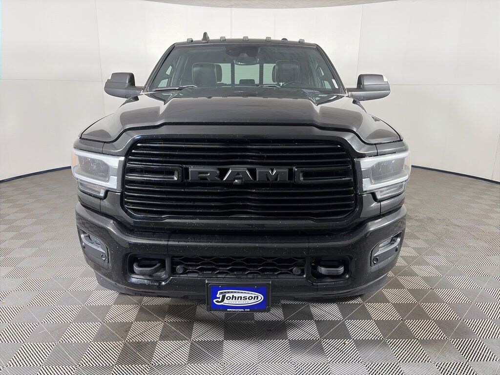We look forward to serving you! Black Appearance Package (Black Exterior Mirrors, Black Exterior Truck Badging, Black Headlamp Bezels, Black Interior Accents, Black Ram Head Tailgate Badge, Black Tail Lamp Bezels, Black Wheel Center Hub, Body Color Door Handles, Body Color Grille Surround, Exterior Mirrors w/Memory, Gloss Black Grille Billets/Accents, Mirror-Mounted Aux Reverse Lamps, Painted Front Bumper, Painted Rear Bumper, Power Adjustable Convex Aux Mirrors, Power Black Tow Mirrors w/Convex Spotter & Memory, and Wheels: 20" x 8.0" Black Painted Aluminum), Cold Weather Group (Engine Block Heater and Winter Front Grille Cover), Laramie Level 2 Equipment Group (1-Year SiriusXM Guardian Trial, 17 Speaker High Performance Audio, 2nd Row In Floor Storage Bins, 5-Year SiriusXM Traffic Service, 5-Year SiriusXM Travel Link Service, Auto High Beam Headlamp Control, Blind Spot & Cross Path Detection, Disassociated Touchscreen Display, Foam Bottle Insert (Door Trim Panel), For Details Visit DriveUconnect.com, GPS Navigation, HD Radio, Heated Second Row Seats, Media Hub w/2 Charge Only USBs, Power Adjustable Pedals w/Memory, Power Chrome Tow Mirrors w/Convex Spotter & Memory, Radio: Uconnect 4C Nav w/8.4" Display, Radio/Driver Seat/Mirrors/Pedals Memory, Rain Sensitive Windshield Wipers, Ramcharger Wireless Charging Pad, Remote Tailgate Release, Single Disc Remote CD Player, SiriusXM Traffic Plus, SiriusXM Travel Link, and Ventilated Front Seats), Protection Group, Quick Order Package 21H Laramie, Safety Group (Adaptive Cruise Control w/Stop and Full Speed Forward Collision Warning Plus), Towing Technology Group (CTR Stop Lamp w/Cargo View Camera, Surround View Camera System, and Trailer Reverse Guidance), #1 Seat Foam Cushion, 10 Speakers, 115V Auxiliary Rear Power Outlet, 12" Touchscreen Display, 2 Way Rear Headrest Seat, 220 Amp Alternator, 3.73 Axle Ratio, 4 Way Front Headrests, 4-Wheel Disc Brakes, 5th Wheel/Gooseneck Towing Prep Group, ABS brakes, Active Noise Control System, Adjustable pedals, Air Conditioning, Alloy wheels, AM/FM radio: SiriusXM, Apple CarPlay, Apple CarPlay/Android Auto, Auto Level Rear Air Suspension, Auto-dimming Rear-View mirror, Automatic temperature control, Brake assist, Bumpers: chrome, Center Hub, Clearance Lamps, Compass, Delay-off headlights, Driver door bin, Driver vanity mirror, Dual front impact airbags, Dual front side impact airbags, Electronic Stability Control, Electronically Controlled Throttle, Folding Flat Load Floor Storage, Front & Rear Rubber Floor Mats, Front anti-roll bar, Front Bumper Sight Shields, Front Center Armrest w/Storage, Front dual zone A/C, Front fog lights, Front reading lights, Front Seat Back Map Pockets, Fully automatic headlights, Garage door transmitter, Google Android Auto, GPS Antenna Input, Heated door mirrors, Heated Front Seats, Heated front seats, Heated Steering Wheel, Heated steering wheel, High Back Seats, Illuminated entry, Integrated Voice Command w/Bluetooth, Leather steering wheel, Leather Trim 40/20/40 Bench Seat, Low tire pressure warning, Occupant sensing airbag, Outside temperature display, Overhead airbag, Overhead console, Panic alarm, ParkView Rear Back-Up Camera, Passenger door bin, Passenger vanity mirror, Power 8-Way Adjustable Passenger Seat, Power Adjust 8-Way Driver Seat, Power Deployable Running Boards, Power door mirrors, Power driver seat, Power passenger seat, Power steering, Power Sunroof, Power windows, Radio data system, Radio: Uconnect 12.0 w/Navigation, Radio: Uconnect 4 w/8.4" Display, Rear 60/40 Folding Seat, Rear reading lights, Rear seat center armrest, Rear step bumper, Rear window defroster, Remote keyless entry, Security system, Selectable