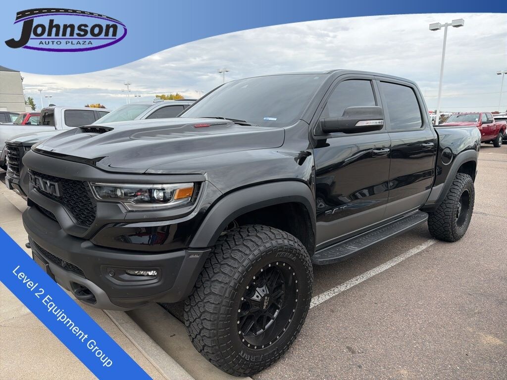 We look forward to serving you! Bed Utility Group (MOPAR 4 Adjustable Cargo Tie-Down Hooks, MOPAR Deployable Bed Step, and MOPAR Spray In Bedliner), Quick Order Package 29Y, Trailer Tow Group (B) (DISC) (Trailer Brake Control and Trailer Light Check), TRX Level 2 Equipment Group (#2 Seat Foam Cushion, 2-Door Passive Entry, Front Door Locks, 4 Way Front Headrests, Blind Spot & Cross Path Detection, Body Color Door Handles, Bucket Seats, Center Console Parts Module, Digital Rearview Mirror, Driver Seat Memory, Driver/Passenger Wrapped Assist Handles, Exterior Mirrors w/Memory, Front Door Accent Lighting, Front Seat Back Map Pockets, Full Length Premium Upgraded Floor Console, harman/kardon 19 Speaker Premium Sound, Heads-Up Display, Heated Front Seats, Heated Second Row Seats, Heated Steering Wheel, IP LED Ambient Light Pipe, Leather Trimmed Bucket Seats, Leather/Suede Flat-Bottom Steering Wheel, LED CHMSL Lamp, Luxury Front Door Trim Panel, MOPAR Bright Pedal Kit, ParkSense Front/Rear Park Assist w/Stop, Pick-Up Box Lighting, Power 4-Way Driver Lumbar Adjust, Power 4-Way Passenger Lumbar Adjust, Power 8-Way Driver & Passenger Seats, Power Adjustable Pedals w/Memory, Premium Wrapped IP Bezel, Radio/Driver Seat/Mirrors/Pedals Memory, Rain Sensitive Windshield Wipers, Rear 60/40 Folding Seat, Rear 60/40 Folding Split Recline Seat, Rear Door Accent Lighting, Rear Underseat Compartment Storage, Rear Window Defroster, Remote Tailgate Release, Sun Visors w/Illuminated Vanity Mirrors, Surround View Camera System, Universal Garage Door Opener, Ventilated Front Seats, Ventilated Rear Seats, and Wireless Charging Pad), 10 Speakers, 3.55 Rear Axle Ratio, 4-Wheel Disc Brakes, ABS brakes, Adaptive suspension, Air Conditioning, Alloy wheels, AM/FM radio: SiriusXM with 360L, Apple CarPlay/Android Auto, Auto High-beam Headlights, Auto-dimming door mirrors, Auto-dimming Rear-View mirror, Automatic temperature control, Black Exterior Mirrors, Brake assist, Cloth/Vinyl Bucket Seats, Compass, Delay-off headlights, Driver door bin, Dual front impact airbags, Dual front side impact airbags, Electronic Stability Control, Exterior Mirrors Courtesy Lamps, Exterior Mirrors w/Heating Element, Exterior Mirrors w/Supplemental Signals, Front anti-roll bar, Front Bucket Seats, Front Center Armrest w/Storage, Front dual zone A/C, Front fog lights, Front License Plate Bracket, Front reading lights, Front wheel independent suspension, Fully automatic headlights, Heated door mirrors, Illuminated entry, Leather Shift Knob, Leather steering wheel, Low tire pressure warning, Navigation System, Occupant sensing airbag, Outside temperature display, Overhead airbag, Overhead console, Panic alarm, ParkView Rear Back-Up Camera, Passenger door bin, Passenger vanity mirror, Power door mirrors, Power driver seat, Power steering, Power windows, Power-Folding Mirrors, Radio data system, Radio: Uconnect 5 Nav w/12.0" Display, Rear seat center armrest, Rear step bumper, Remote keyless entry, Security system, Speed control, Split folding rear seat, Sport steering wheel, Steering wheel mounted audio controls, Tachometer, Telescoping steering wheel, Tilt steering wheel, Traction control, Tri-Fold Tonneau Cover, Trip computer, TRX Red Interior Accents, Turn signal indicator mirrors, Variably intermittent wipers, Voltmeter, Wheels: 18" x 9" Bead-Lock Aluminum, and Wheels: 18" x 9" Black Paint/Polish AluminuM.