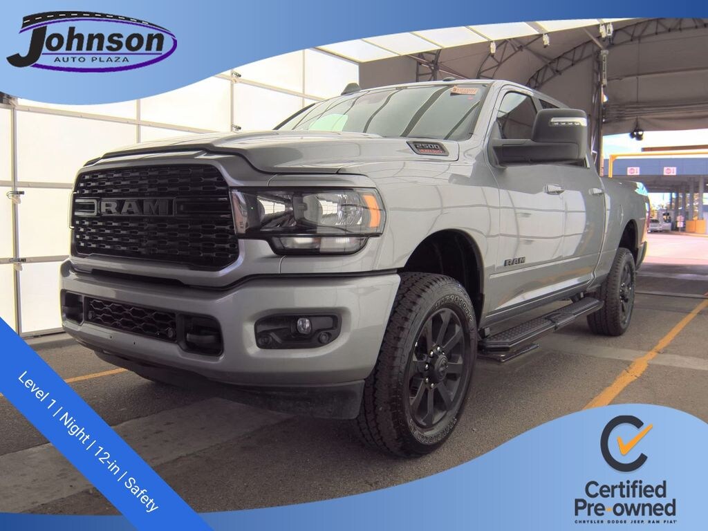 We look forward to serving you! Bed Utility Group (LED Bed Lighting, MOPAR Deployable Bed Step, and MOPAR Spray In Bedliner), Level 1 Equipment Group (2 Way Rear Headrest Seat, 2nd Row In Floor Storage Bins, 4 Way Front Headrests, 40/20/40 Split Bench Seat, 4G LTE Wi-Fi Hot Spot, 8.4" Touchscreen Display, Apple CarPlay, Auto Power-Folding Mirrors, Big Horn IP Badge, Black Exterior Mirrors, Bluetooth Handsfree Phone & Audio, Center Hub, Connectivity - US/Canada, Dual Glove Boxes, Exterior Mirrors Courtesy Lamps, Exterior Mirrors w/Heating Element, Exterior Mirrors w/Supplemental Signals, Foam Bottle Insert (Door Trim Panel), Footwell Courtesy Lamp, For Details, Visit DriveUconnect.com, For More Info, Call 800-643-2112, Forward & Reverse Utility Lights, Front Armrest w/Cupholders, Front Center Seat Cushion Storage, Front Fog Lamps, Front Seat Back Map Pockets, Global Telematics Box Module (TBM), Glove Box Lamp, Google Android Auto, GPS Antenna Input, Integrated Center Stack Radio, Integrated Voice Command w/Bluetooth, Leather Wrapped Steering Wheel, Locking Lower Glove Box, Manual Adjust 4-Way Front Passenger Seat, Mirror Running Lights, Power 2-Way Driver Lumbar Adjust, Power Adjust 8-Way Driver Seat, Power Adjust Mirrors, Power Adjustable Convex Aux Mirrors, Power Heated Fold Telescope Mirrors, Power Telescoping Mirrors, Rear 60/40 Folding Seat, Rear Dome w/On/Off Switch Lamp, Remote USB Port - Charge Only, Selectable Tire Fill Alert, SiriusXM Radio Service, SiriusXM Satellite Radio, Steering Wheel Mounted Audio Controls, Storage Tray, and Wheels: 18" x 8.0" Polished Aluminum), Night Edition (Black Exterior Truck Badging, Black Headlamp Bezels, Black Interior Accents, Black Ram Head Tailgate Badge, Black Tail Lamp Bezels, Black Wheel Center Hub, Body Color Door Handles, Body Color Grille Surround, Gloss Black Nostrils/MIC Black Grille, Painted Front Bumper, Painted Rear Bumper, ParkSense Front/Rear Park Assist System, and Wheels: 20" x 8.0" Black Painted Aluminum), Protection Group (Tow Hooks), Quick Order Package 2GZ Big Horn, Safety Group (Adaptive Cruise Control w/Stop, Adaptive Steering System, Auto High Beam Headlamp Control, Auto-Dimming Rear-View Mirror, Full Speed Forward Collision Warning Plus, Lane Keep Assist, and Rain Sensitive Windshield Wipers), 12" Touchscreen Display, 3.73 Axle Ratio, 4-Wheel Disc Brakes, 6 Speakers, 9 Alpine Speakers w/Subwoofer, ABS brakes, Active Noise Control System, Air Conditioning, Air Conditioning ATC w/Dual Zone Control, Alexa Built-In, All R1 High Radios, All Radio Equipped Vehicles, Anti-Spin Differential Rear Axle, Blind Spot & Cross Path Detection, Brake assist, Bumpers: chrome, Center Stack Storage Drawer, Cloth 40/20/40 Bench Seat, Compass, Connected Travel & Traffic Services, Delay-off headlights, Disassociated Touchscreen Display, Driver door bin, Dual front impact airbags, Dual front side impact airbags, Electronic Stability Control, Electronically Controlled Throttle, Emergency communication system: SiriusXM Guardian, Front anti-roll bar, Front Center Armrest w/Storage, Front License Plate Bracket, Front reading lights, Fully automatic headlights, GPS Navigation, HD Radio, Heated door mirrors, Illuminated entry, LED Tail Lamps, Low tire pressure warning, Manual Adjust 4-Way Driver Seat, Manufacturer's Statement of Origin, Occupant sensing airbag, Off-Road Information Pages, Outside temperature display, Overhead airbag, Overhead console, Painted Flat Cab-Length Side Steps, Panic alarm, ParkView Rear Back-Up Camera, Passenger door bin, Passenger vanity mirror, Power door mirrors, Power steering, Power windows, Premium Cloth 40/20/40 Bench Seat (DISC), Radio data system, Radio: Uconnect 3 w/5" Di
