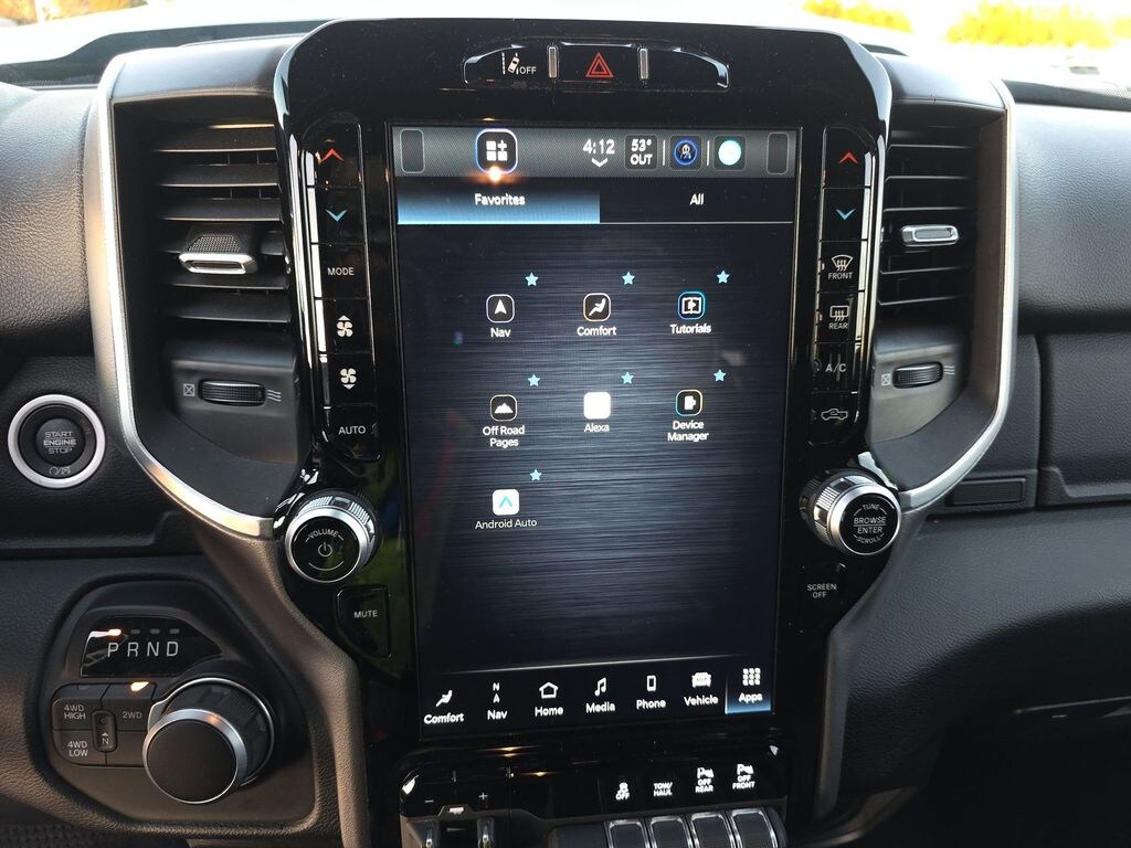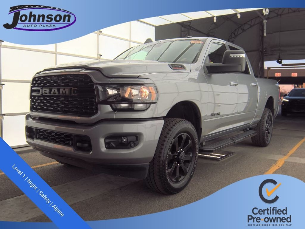 We look forward to serving you! Bed Utility Group (LED Bed Lighting, MOPAR Deployable Bed Step, and MOPAR Spray In Bedliner), Level 1 Equipment Group (2 Way Rear Headrest Seat, 2nd Row In Floor Storage Bins, 4 Way Front Headrests, 40/20/40 Split Bench Seat, 4G LTE Wi-Fi Hot Spot, 8.4" Touchscreen Display, Apple CarPlay, Auto Power-Folding Mirrors, Big Horn IP Badge, Black Exterior Mirrors, Bluetooth Handsfree Phone & Audio, Center Hub, Connectivity - US/Canada, Dual Glove Boxes, Exterior Mirrors Courtesy Lamps, Exterior Mirrors w/Heating Element, Exterior Mirrors w/Supplemental Signals, Foam Bottle Insert (Door Trim Panel), Footwell Courtesy Lamp, For Details, Visit DriveUconnect.com, For More Info, Call 800-643-2112, Forward & Reverse Utility Lights, Front Armrest w/Cupholders, Front Center Seat Cushion Storage, Front Fog Lamps, Front Seat Back Map Pockets, Global Telematics Box Module (TBM), Glove Box Lamp, Google Android Auto, GPS Antenna Input, Integrated Center Stack Radio, Integrated Voice Command w/Bluetooth, Leather Wrapped Steering Wheel, Locking Lower Glove Box, Manual Adjust 4-Way Front Passenger Seat, Mirror Running Lights, Power 2-Way Driver Lumbar Adjust, Power Adjust 8-Way Driver Seat, Power Adjust Mirrors, Power Adjustable Convex Aux Mirrors, Power Heated Fold Telescope Mirrors, Power Telescoping Mirrors, Rear 60/40 Folding Seat, Rear Dome w/On/Off Switch Lamp, Remote USB Port - Charge Only, Selectable Tire Fill Alert, SiriusXM Radio Service, SiriusXM Satellite Radio, Steering Wheel Mounted Audio Controls, Storage Tray, and Wheels: 18" x 8.0" Polished Aluminum), Night Edition (Black Exterior Truck Badging, Black Headlamp Bezels, Black Interior Accents, Black Ram Head Tailgate Badge, Black Tail Lamp Bezels, Black Wheel Center Hub, Body Color Door Handles, Body Color Grille Surround, Gloss Black Nostrils/MIC Black Grille, Painted Front Bumper, Painted Rear Bumper, ParkSense Front/Rear Park Assist System, and Wheels: 20" x 8.0" Black Painted Aluminum), Protection Group (Tow Hooks), Quick Order Package 2GZ Big Horn, Safety Group (Adaptive Cruise Control w/Stop, Adaptive Steering System, Auto High Beam Headlamp Control, Auto-Dimming Rear-View Mirror, Full Speed Forward Collision Warning Plus, Lane Keep Assist, and Rain Sensitive Windshield Wipers), 12" Touchscreen Display, 3.73 Axle Ratio, 4-Wheel Disc Brakes, 6 Speakers, 9 Alpine Speakers w/Subwoofer, ABS brakes, Active Noise Control System, Air Conditioning, Air Conditioning ATC w/Dual Zone Control, Alexa Built-In, All R1 High Radios, All Radio Equipped Vehicles, Anti-Spin Differential Rear Axle, Blind Spot & Cross Path Detection, Brake assist, Bumpers: chrome, Center Stack Storage Drawer, Cloth 40/20/40 Bench Seat, Compass, Connected Travel & Traffic Services, Delay-off headlights, Disassociated Touchscreen Display, Driver door bin, Dual front impact airbags, Dual front side impact airbags, Electronic Stability Control, Electronically Controlled Throttle, Emergency communication system: SiriusXM Guardian, Front anti-roll bar, Front Center Armrest w/Storage, Front License Plate Bracket, Front reading lights, Fully automatic headlights, GPS Navigation, HD Radio, Heated door mirrors, Illuminated entry, LED Tail Lamps, Low tire pressure warning, Manual Adjust 4-Way Driver Seat, Manufacturer's Statement of Origin, Occupant sensing airbag, Off-Road Information Pages, Outside temperature display, Overhead airbag, Overhead console, Painted Flat Cab-Length Side Steps, Panic alarm, ParkView Rear Back-Up Camera, Passenger door bin, Passenger vanity mirror, Power door mirrors, Power steering, Power windows, Premium Cloth 40/20/40 Bench Seat (DISC), Radio data system, Radio: Uconnect 3 w/5" Di