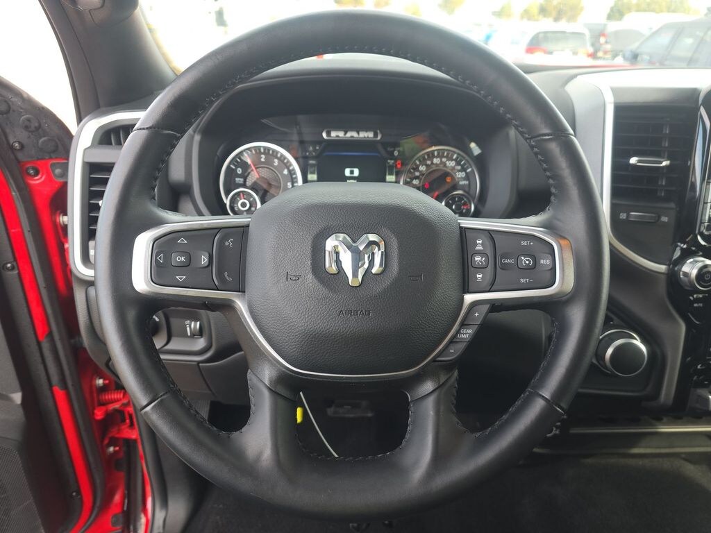 We look forward to serving you! Bed Utility Group (LED Bed Lighting, MOPAR Deployable Bed Step, and MOPAR Spray In Bedliner), Level 1 Equipment Group (2 Way Rear Headrest Seat, 2nd Row In Floor Storage Bins, 4 Way Front Headrests, 40/20/40 Split Bench Seat, 4G LTE Wi-Fi Hot Spot, 8.4" Touchscreen Display, Apple CarPlay, Auto Power-Folding Mirrors, Big Horn IP Badge, Black Exterior Mirrors, Bluetooth Handsfree Phone & Audio, Center Hub, Connectivity - US/Canada, Dual Glove Boxes, Exterior Mirrors Courtesy Lamps, Exterior Mirrors w/Heating Element, Exterior Mirrors w/Supplemental Signals, Foam Bottle Insert (Door Trim Panel), Footwell Courtesy Lamp, For Details, Visit DriveUconnect.com, For More Info, Call 800-643-2112, Forward & Reverse Utility Lights, Front Armrest w/Cupholders, Front Center Seat Cushion Storage, Front Fog Lamps, Front Seat Back Map Pockets, Global Telematics Box Module (TBM), Glove Box Lamp, Google Android Auto, GPS Antenna Input, Integrated Center Stack Radio, Integrated Voice Command w/Bluetooth, Leather Wrapped Steering Wheel, Locking Lower Glove Box, Manual Adjust 4-Way Front Passenger Seat, Mirror Running Lights, Power 2-Way Driver Lumbar Adjust, Power Adjust 8-Way Driver Seat, Power Adjust Mirrors, Power Adjustable Convex Aux Mirrors, Power Heated Fold Telescope Mirrors, Power Telescoping Mirrors, Rear 60/40 Folding Seat, Rear Dome w/On/Off Switch Lamp, Remote USB Port - Charge Only, Selectable Tire Fill Alert, SiriusXM Radio Service, SiriusXM Satellite Radio, Steering Wheel Mounted Audio Controls, Storage Tray, and Wheels: 18" x 8.0" Polished Aluminum), Night Edition (Black Exterior Truck Badging, Black Headlamp Bezels, Black Interior Accents, Black Ram Head Tailgate Badge, Black Tail Lamp Bezels, Black Wheel Center Hub, Body Color Door Handles, Body Color Grille Surround, Gloss Black Nostrils/MIC Black Grille, Painted Front Bumper, Painted Rear Bumper, ParkSense Front/Rear Park Assist System, and Wheels: 20" x 8.0" Black Painted Aluminum), Protection Group (Tow Hooks), Quick Order Package 2GZ Big Horn, Safety Group (Adaptive Cruise Control w/Stop, Adaptive Steering System, Auto High Beam Headlamp Control, Auto-Dimming Rear-View Mirror, Full Speed Forward Collision Warning Plus, Lane Keep Assist, and Rain Sensitive Windshield Wipers), 12" Touchscreen Display, 3.73 Axle Ratio, 4-Wheel Disc Brakes, 6 Speakers, 9 Alpine Speakers w/Subwoofer, ABS brakes, Active Noise Control System, Air Conditioning, Air Conditioning ATC w/Dual Zone Control, Alexa Built-In, All R1 High Radios, All Radio Equipped Vehicles, Anti-Spin Differential Rear Axle, Blind Spot & Cross Path Detection, Brake assist, Bumpers: chrome, Center Stack Storage Drawer, Cloth 40/20/40 Bench Seat, Compass, Connected Travel & Traffic Services, Delay-off headlights, Disassociated Touchscreen Display, Driver door bin, Dual front impact airbags, Dual front side impact airbags, Electronic Stability Control, Electronically Controlled Throttle, Emergency communication system: SiriusXM Guardian, Front anti-roll bar, Front Center Armrest w/Storage, Front License Plate Bracket, Front reading lights, Fully automatic headlights, GPS Navigation, HD Radio, Heated door mirrors, Illuminated entry, LED Tail Lamps, Low tire pressure warning, Manual Adjust 4-Way Driver Seat, Manufacturer's Statement of Origin, Occupant sensing airbag, Off-Road Information Pages, Outside temperature display, Overhead airbag, Overhead console, Painted Flat Cab-Length Side Steps, Panic alarm, ParkView Rear Back-Up Camera, Passenger door bin, Passenger vanity mirror, Power door mirrors, Power steering, Power windows, Premium Cloth 40/20/40 Bench Seat (DISC), Radio