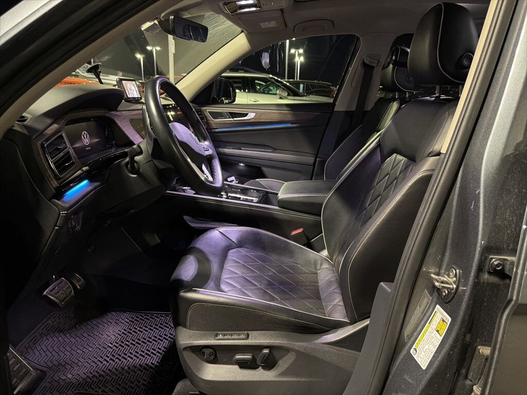 We look forward to serving you! 10 Speakers, 3.60 Axle Ratio, 3rd row seats: split-bench, 4-Wheel Disc Brakes, ABS brakes, Air Conditioning, Alloy wheels, AM/FM radio: SiriusXM with 360L, Auto High-beam Headlights, Auto-dimming Rear-View mirror, Automatic temperature control, Brake assist, Bumpers: body-color, Compass, Delay-off headlights, Driver door bin, Driver vanity mirror, Dual front impact airbags, Dual front side impact airbags, Electronic Stability Control, Emergency communication system: VW Car-Net Safe & Secure 5-year, Exterior Parking Camera Rear, Four wheel independent suspension, Front anti-roll bar, Front Bucket Seats, Front Center Armrest, Front dual zone A/C, Front fog lights, Front reading lights, Fully automatic headlights, harman/kardon® Speakers, Heads-Up Display, Heated door mirrors, Heated front seats, Heated rear seats, Heated steering wheel, Heated/Actively Ventilated Front Bucket Seats, Illuminated entry, Leather steering wheel, Low tire pressure warning, Memory seat, Navigation System, Occupant sensing airbag, Outside temperature display, Overhead airbag, Overhead console, Panic alarm, Passenger door bin, Passenger vanity mirror, Perforated Vienna Leather Seating Surfaces, Power door mirrors, Power driver seat, Power Liftgate, Power moonroof: Panoramic, Power passenger seat, Power steering, Power windows, Radio data system, Radio: MIB3 Discover Media w/Navigation, Rain sensing wipers, Rear air conditioning, Rear anti-roll bar, Rear audio controls, Rear reading lights, Rear seat center armrest, Rear window defroster, Rear window wiper, Remote keyless entry, Security system, Speed control, Speed-sensing steering, Split folding rear seat, Spoiler, Sport steering wheel, Standard Suspension, Steering wheel mounted audio controls, Tachometer, Telescoping steering wheel, Tilt steering wheel, Traction control, Trip computer, Turn signal indicator mirrors, Variably intermittent wipers, Ventilated front seats, and Wheels: 21" 2-Tone Machined AlloY.